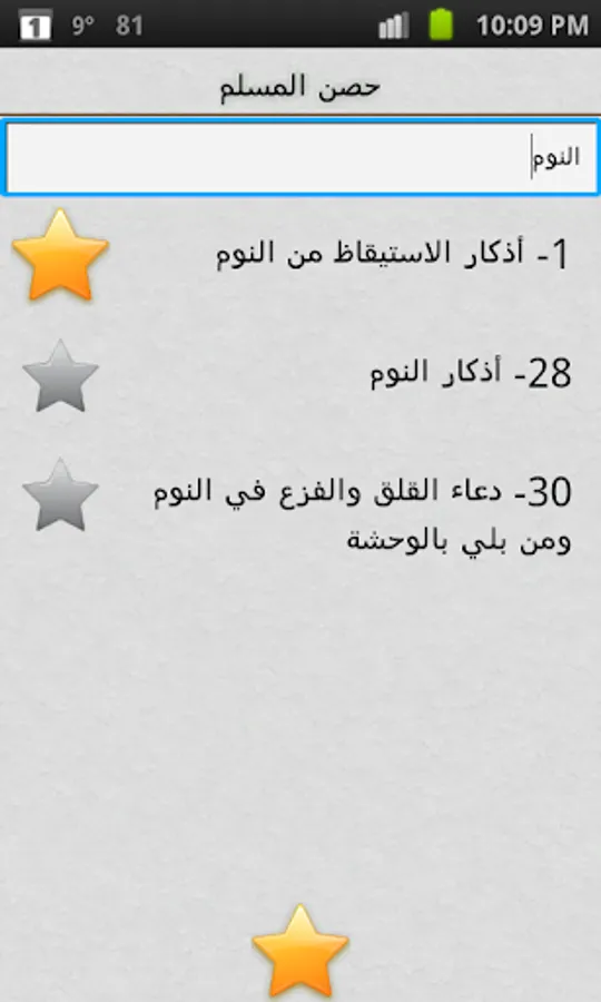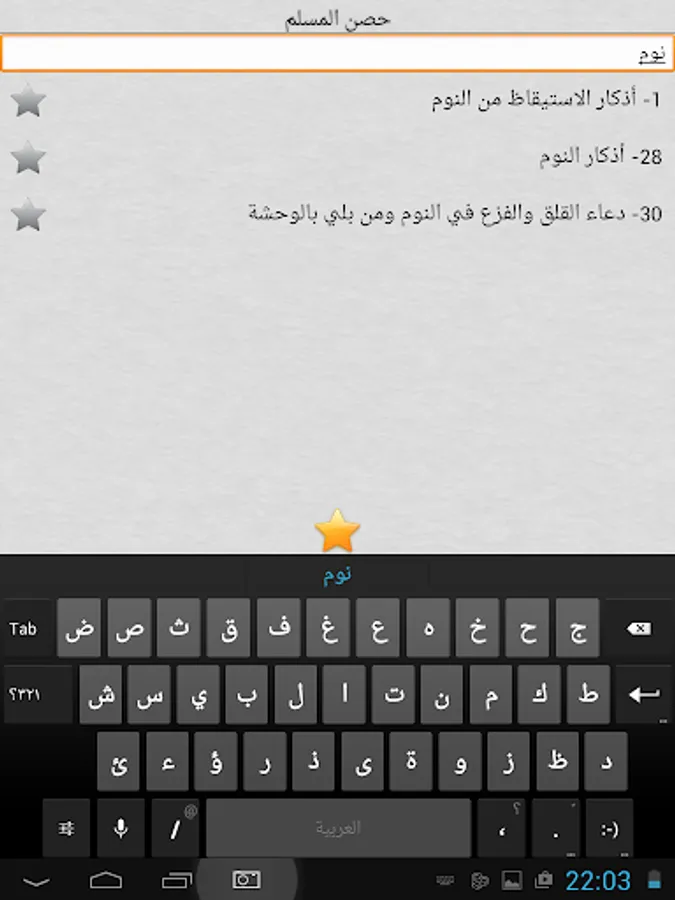 أمكانية إضافة الأذكار التي تقرأها بكثرة إلي قائمة الأذكار المفضلة لسهولة الوصول إليها بعد ذلك