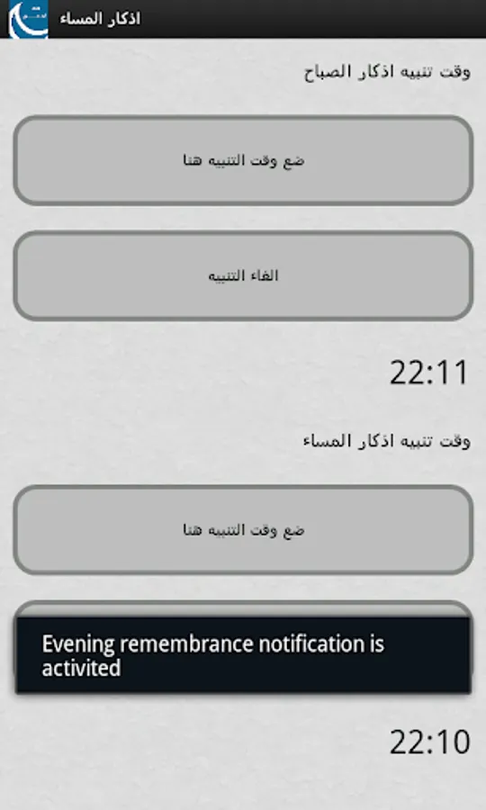 كما يمكنك ضبط تنبيه لاذكار الصباح والمساء.