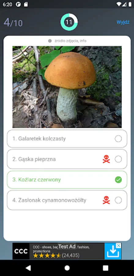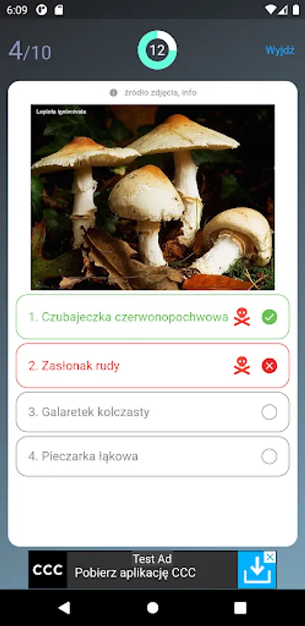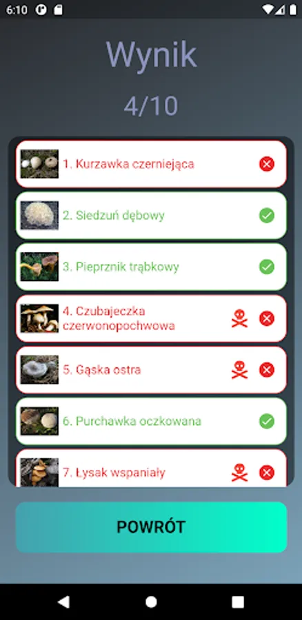 Test your knowledge with a mushroom quiz. Check out how you are doing mushroom recognition. The quiz shows whether the mushroom is poisonous or edible.