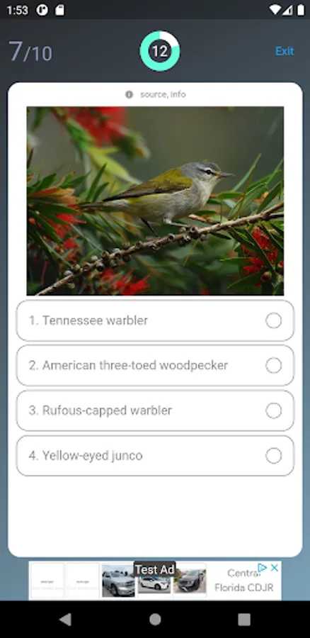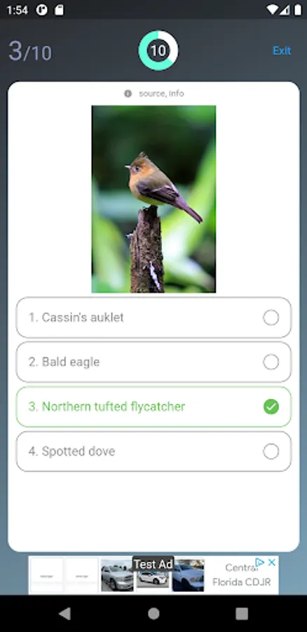 Watch the beatuful bird photos and recognize the species of American birds with this US birds quiz app.