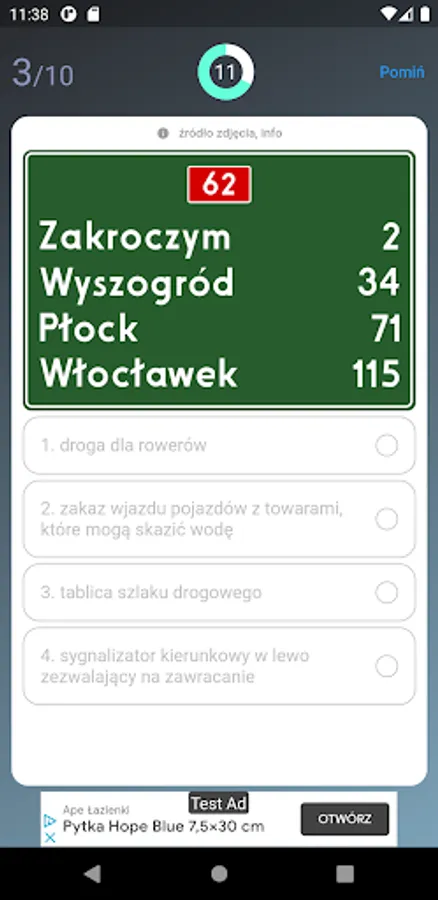 Road signs quiz. Train the knowledge of road signs to pass your driving test and to better navigate the road.