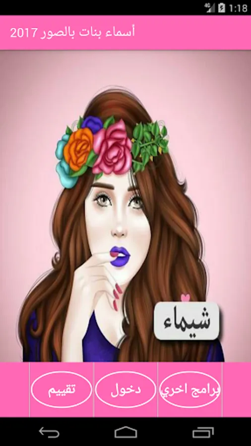 تطبيق اسماء بنات بالصور يضم مجموعة كبيرة من الصور اكثر من 200 صورة لاجمل صور اسماء البنات يضم جميع اسماء البنات من كل الدول العربية.