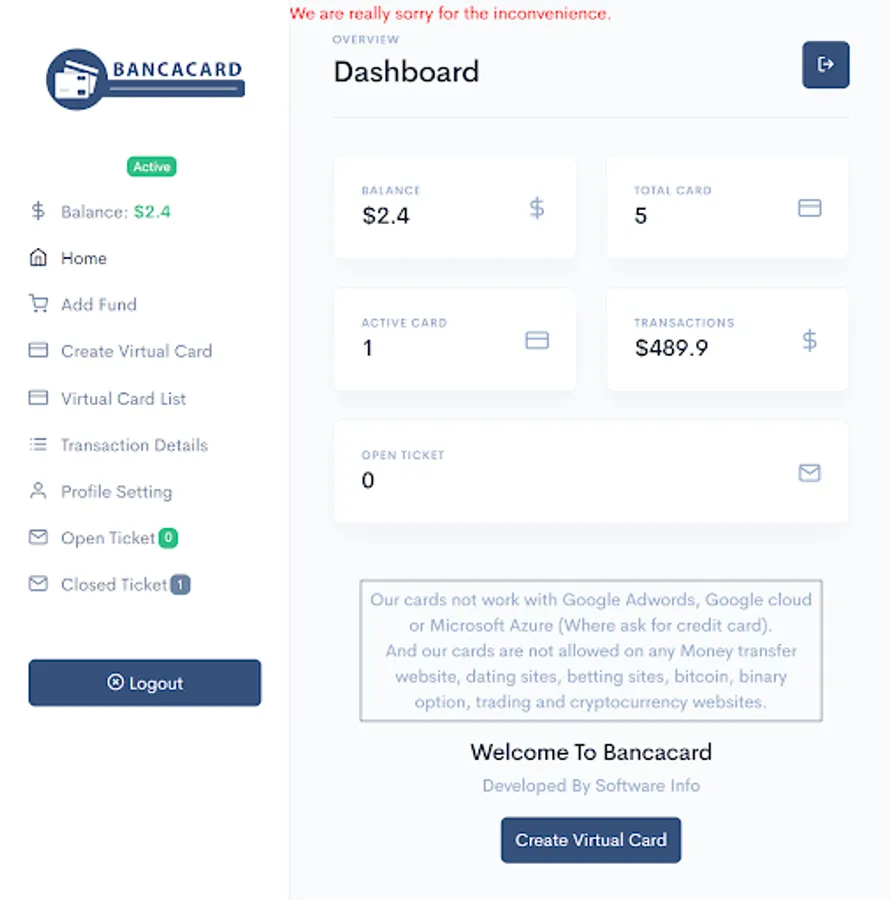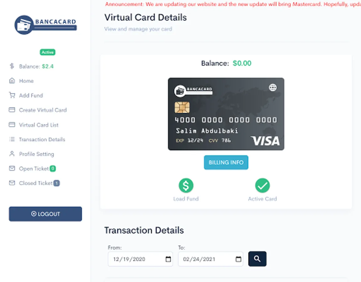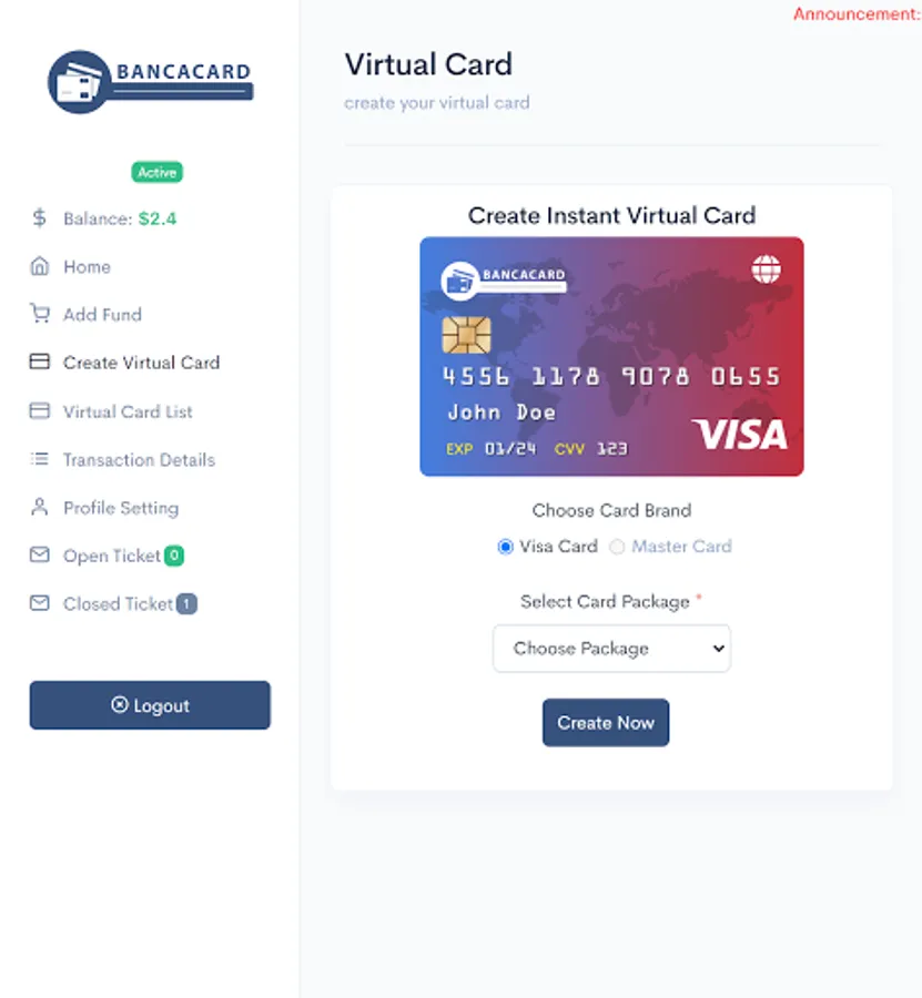 1. Unlimited Virtual Card