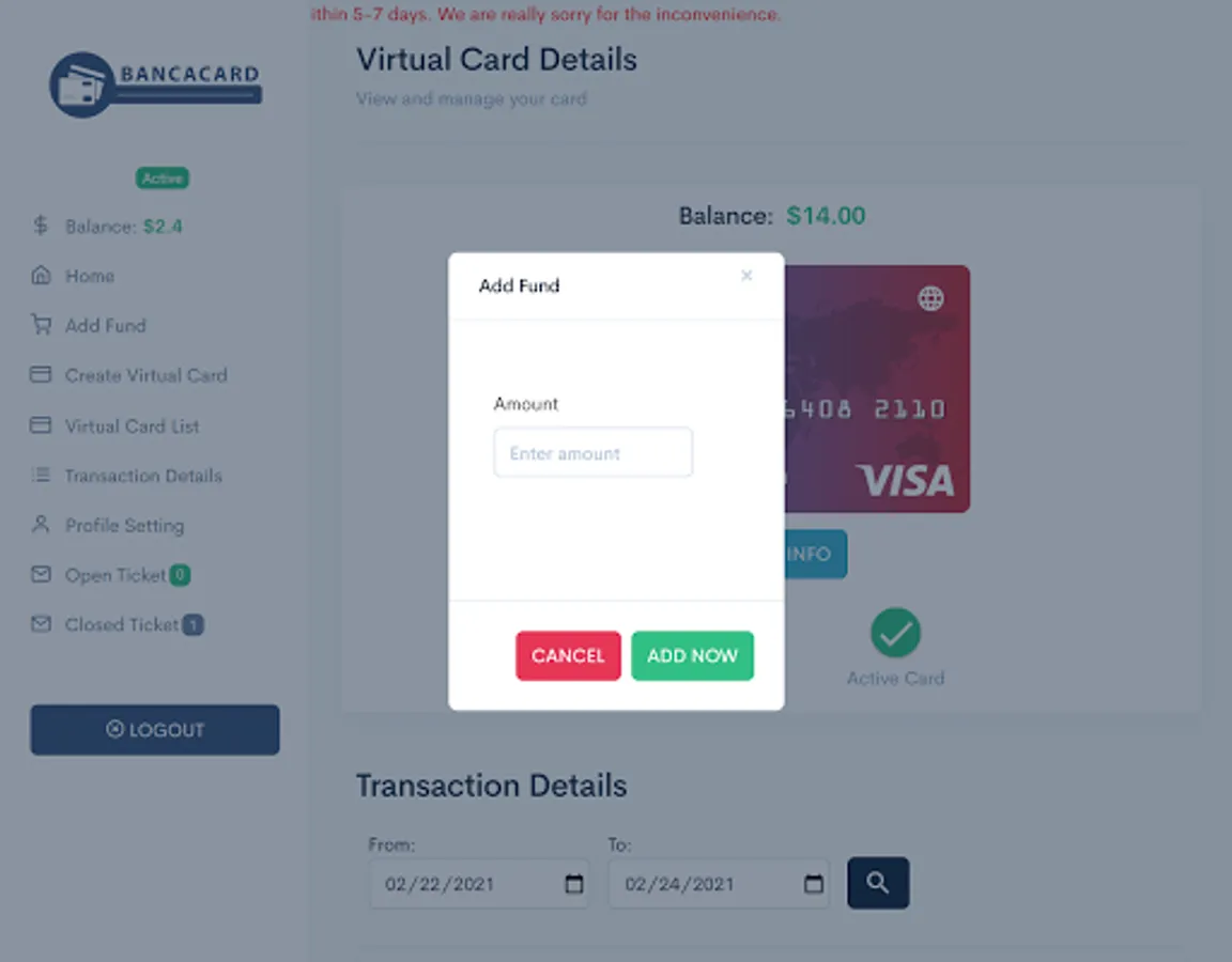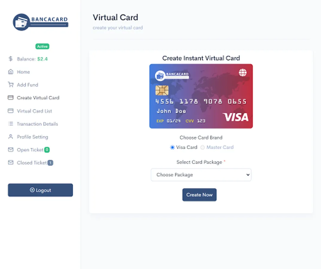 Open an account and start issuing your virtual card Instantly.