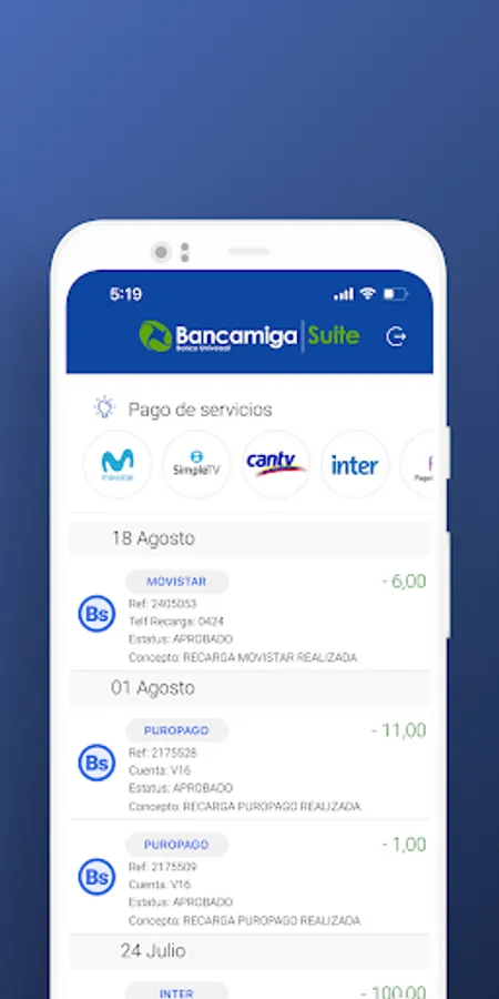 This service channel is aimed at the natural person customer segment and at the consultation level for legal entities, allowing them to carry out their financial operations once they have completed the online Bancamiga affiliation process and simply by installing the application (App), available in the download stores (Play Store) of your mobile devices or tablets with Android operating system.