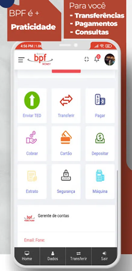 Complete digital account, with debit and credit card. You pay, receive, transfer, issue everything on your cell phone, whenever and wherever you want.
