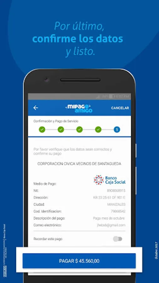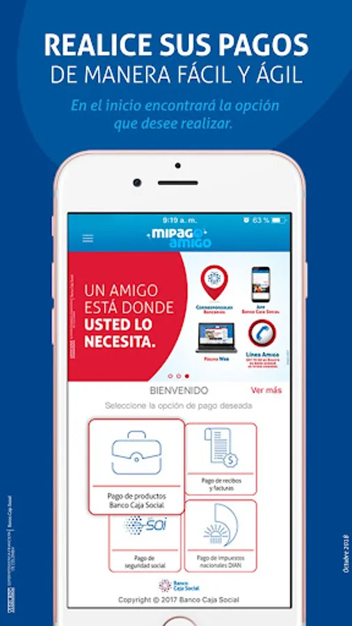 Banco Caja Social has mipagoamigo, an application developed for mobile devices to pay their bills, receipts, social security and other services in an easy, fast and safely.