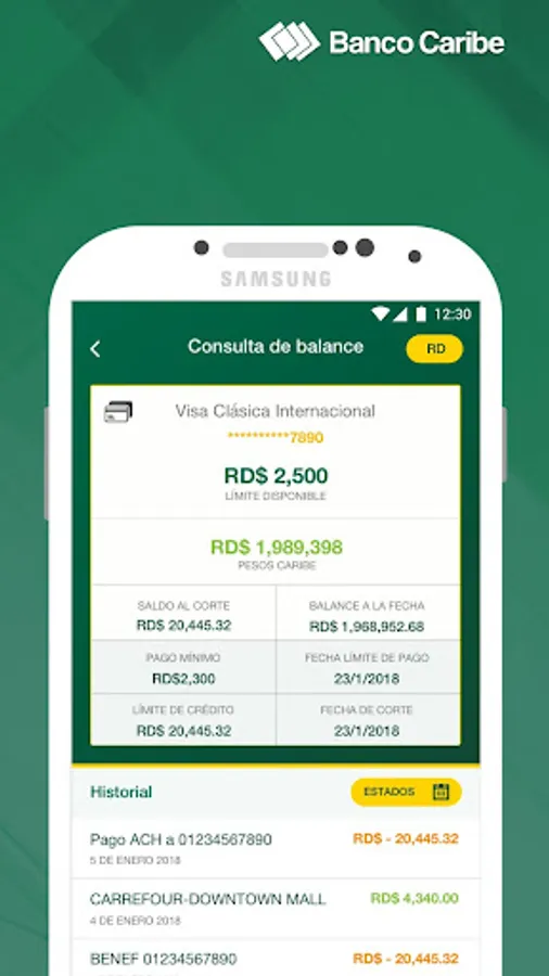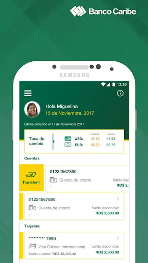 Banco Multiple Caribe Internacional, S.A. It offers all of its services with your app. You can query balances, immediate payments between your accounts and third parties, as well as other beneficiaries transactions to other banks. You can also locate branches more fences to you, enjoy different promotions and track requests made.