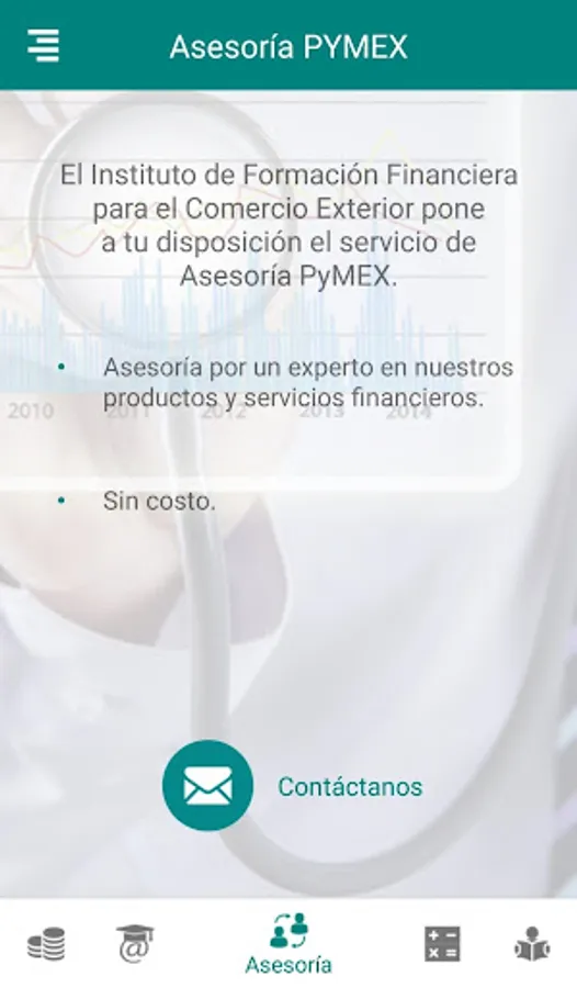 Bancomext Pymex puts at your fingertips relevant information about the bank as well as the products and services available to you, such as: