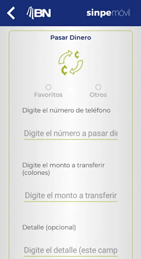 This application will facilitate the use of BN SINPE Mobile; You should only select the desired transaction and complete the fields you requested. With these steps, the message is automatically generated and ready to be sent to the bank where your application will be handled. Take greater advantage of this new service and turn your phone into your new purse. For more information you can contact our Call Center 2212-2000