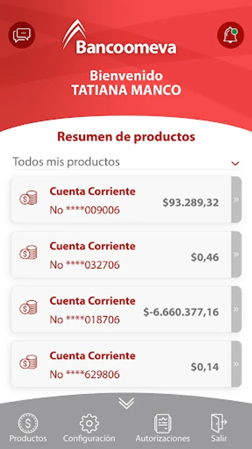 Know the status, available balance, last movement dates, overdraft space, used space and available space of your savings and checking accounts.