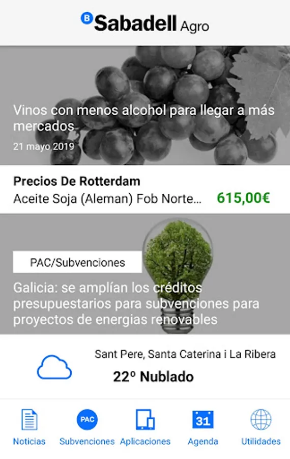 Sabadell Agrarian Business, available for Android and Apple devices, offers: