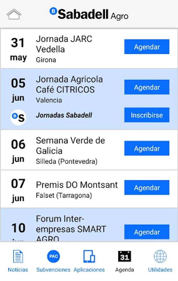 · Agenda: Main events of the agri-food sector, to schedule them on the mobile and do not forget any. In addition to the possibility of registration to the Conference sponsored by Banco Sabadell.