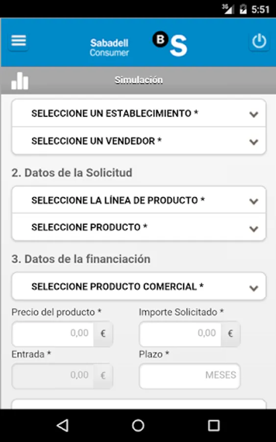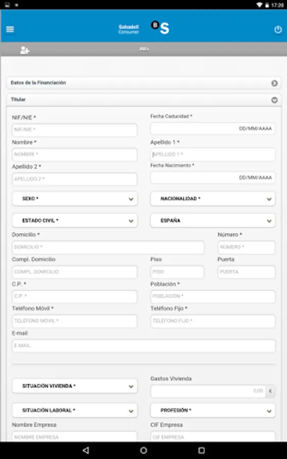 Consumer Sabadell APP is a tool that allows loan applications in a simple and intuitive way allowing even the signing of the contract at the same time. In addition, our prescribers have tools to control and monitor the status of operations and even sending the documentation associated with the loan, directly from the application itself simply taking a photograph the document. It is a new way of operating that helps our customers realize intuitively signature anywhere, at any time and fully operating as a paperless office.