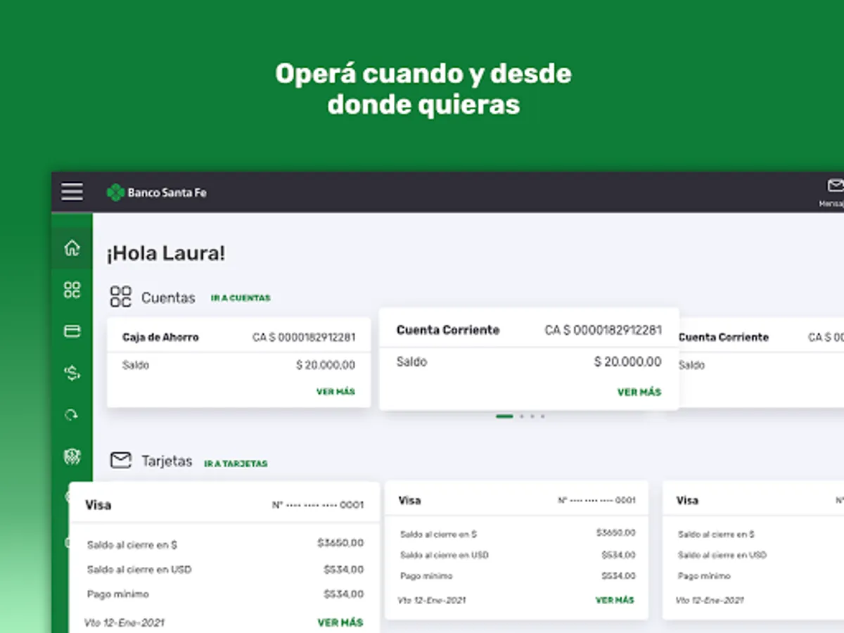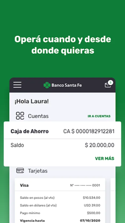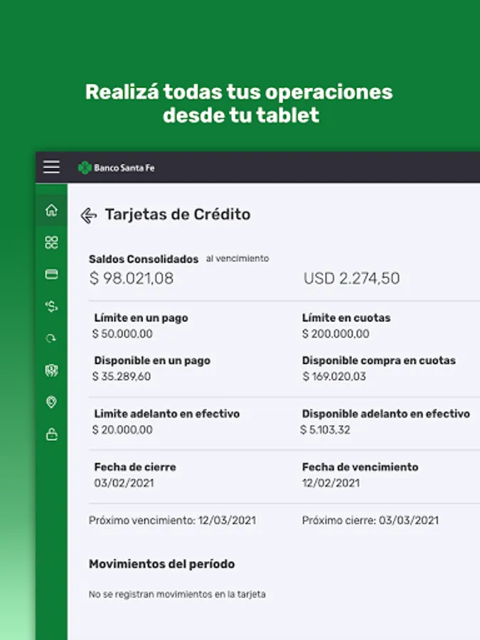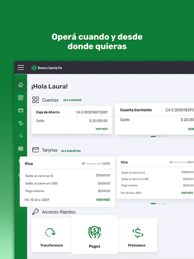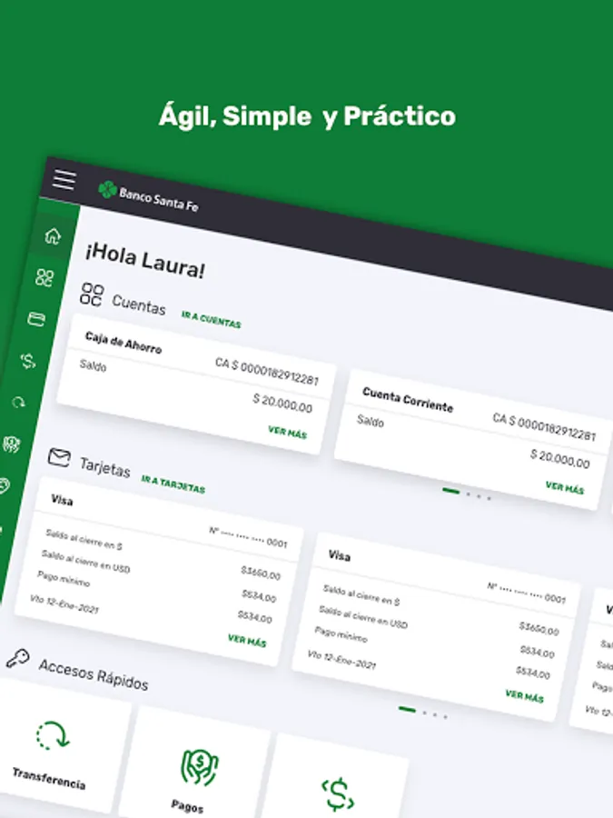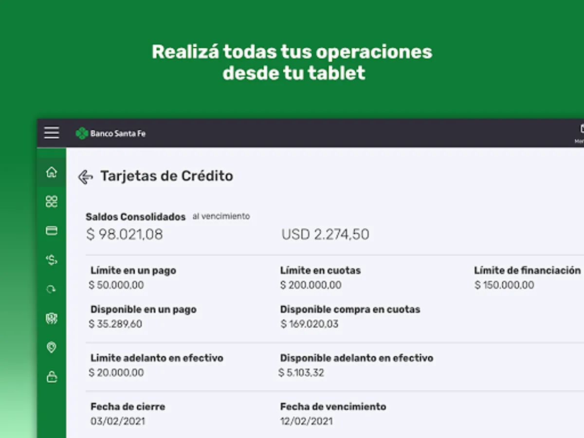 Get to know our new Banco Santa Fe Home Banking App. Now you will be able to carry out all your banking operations from your mobile device at any time of the day no matter where you are. Pay your services, make transfers, check your balance, make investments, find the closest banks, all this and much more at your fingertips. We present a dynamic and easy-to-use app, which allows you to take advantage of your free time doing what you really like, without any worries. New Home Banking app, more agile, simple and practical.