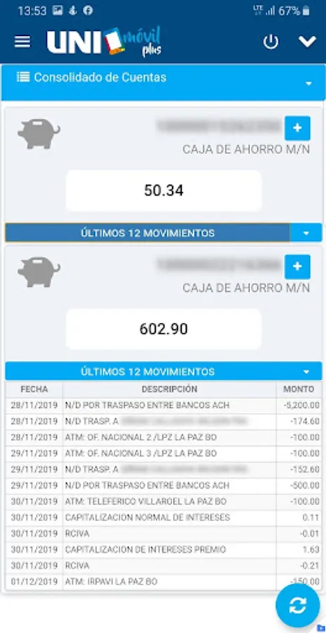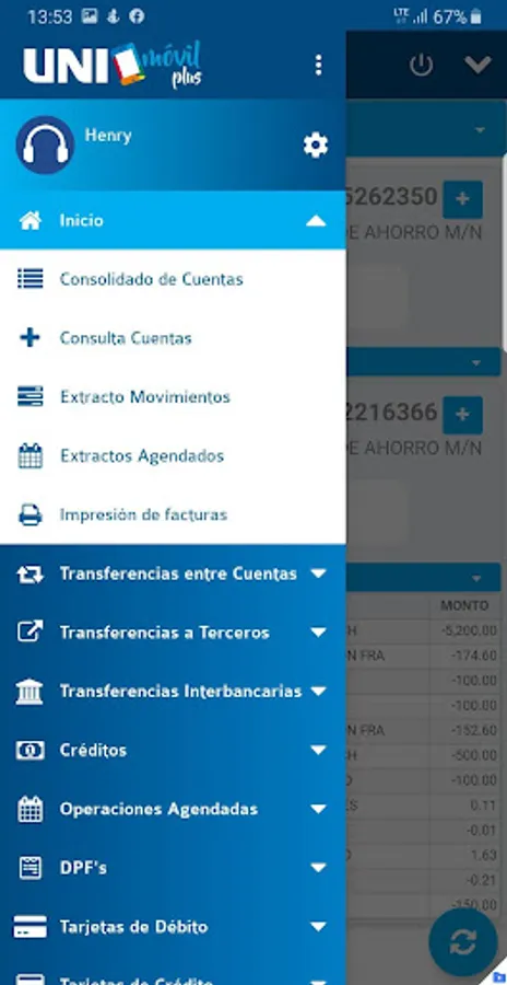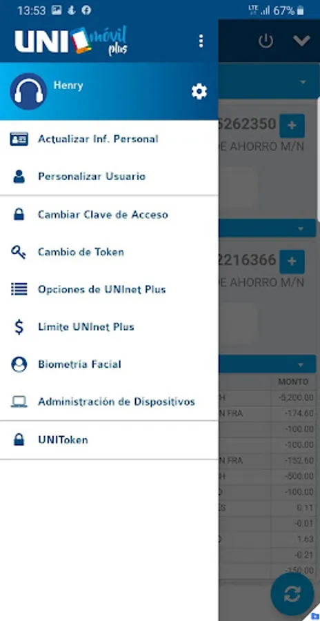 In UNImóvil Plus, whether you are a natural person or a legal entity, you can find and carry out ALL THE OPERATIONS that you have available in our UNInet Plus internet banking: