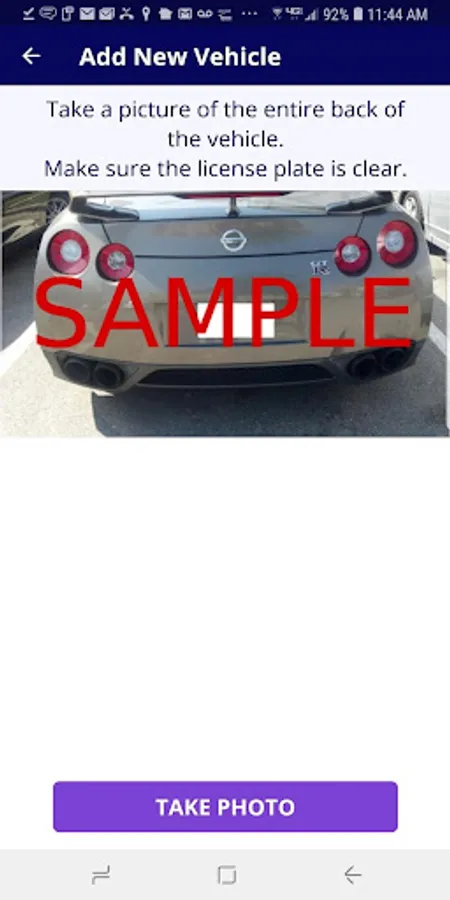 4. TAKE LICENSE PHOTO Using your phone or camera enabled Android device, take a photo of the entire back of your vehicle from the left side bumper to the right side bumper, including a clear, readable image of the license plate.