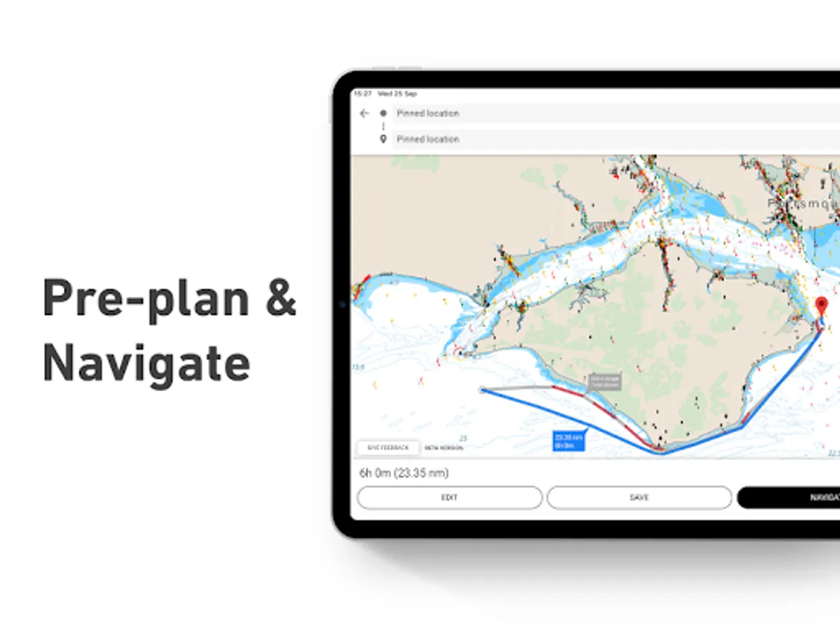 Use the app to plan your routes and waypoints in advance or when navigating out and about on the water, the detailed charts, auto routing and live AIS allow you to have all the information you need at your fingertips.