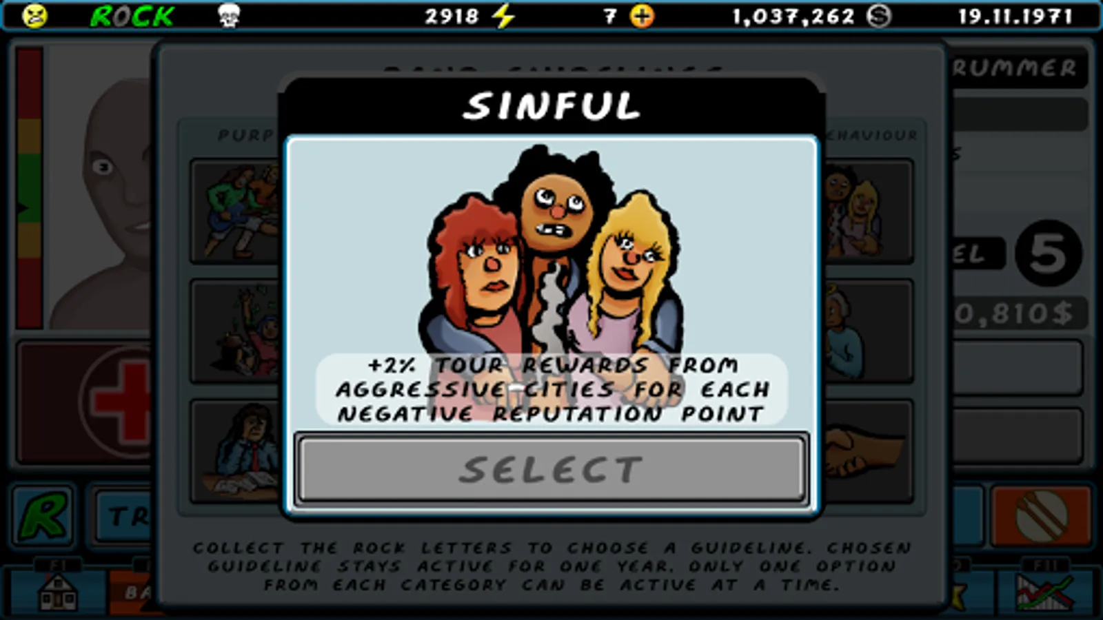 Our days were filled with typical band activities: we made albums, toured, went to interviews, performed on TV and trained relentlessly. We learned various different skills and spent our hard earned cash on items that helped us on our journey. Occasionally we had to prove our worth by facing other bands in a Battle of the Bands contest.
