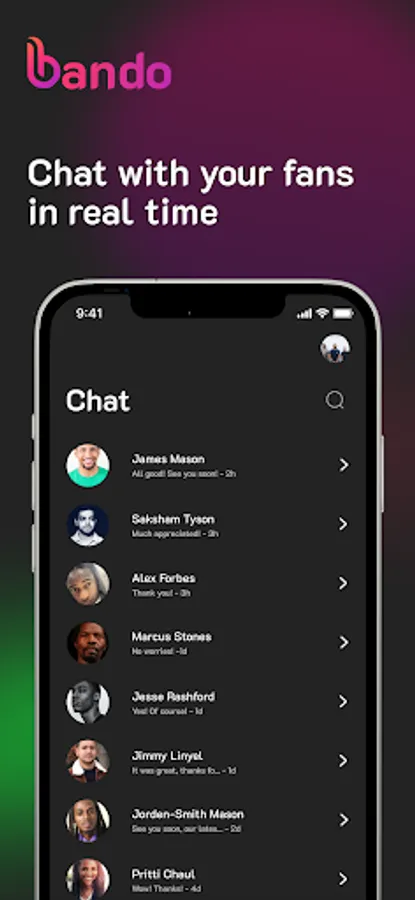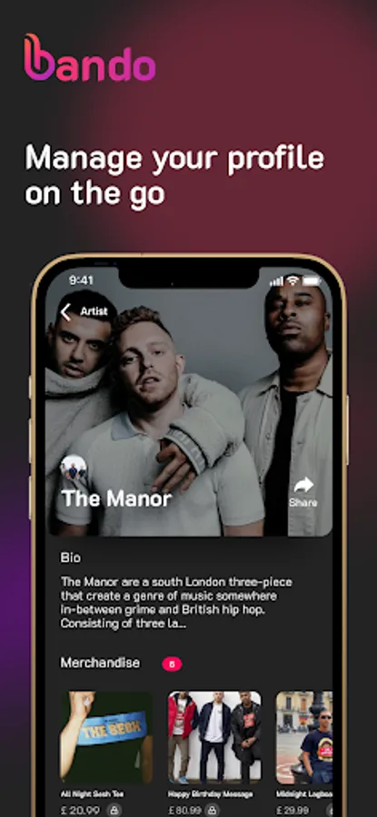 Bando is the only mobile application built by Artists for Artists to monitor and monetise their most loyal fans' engagement in one place.