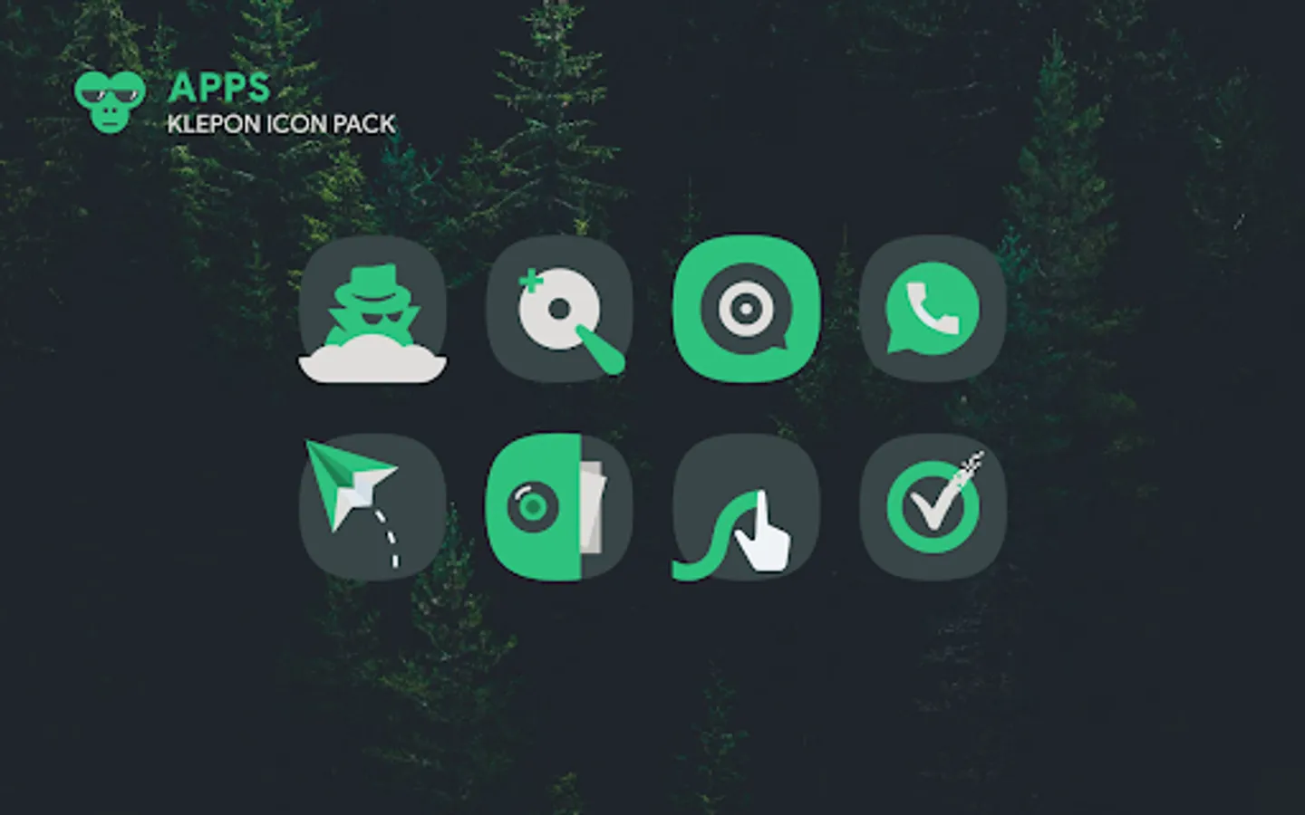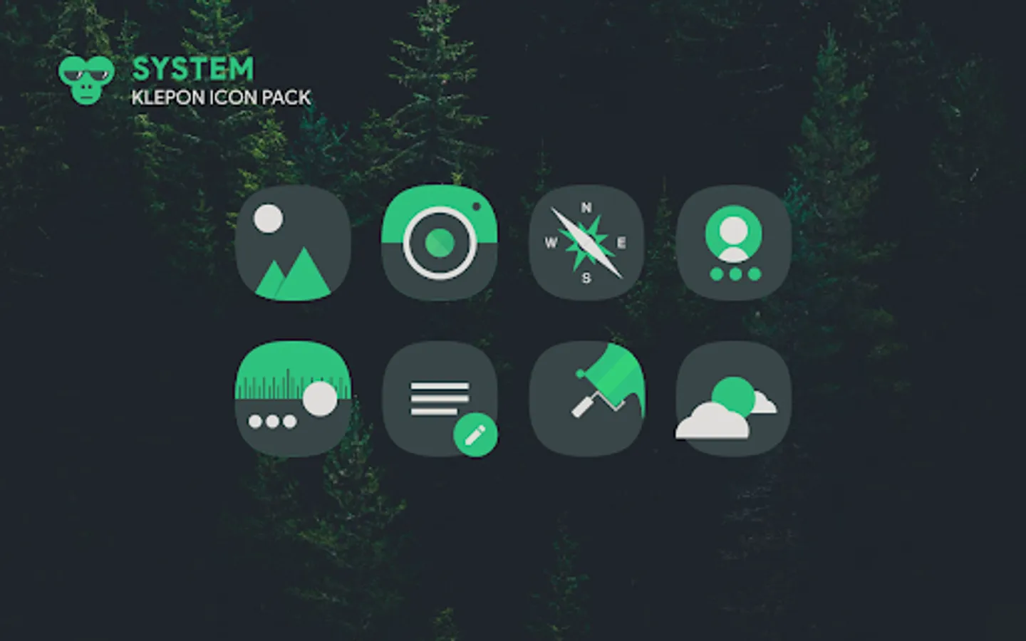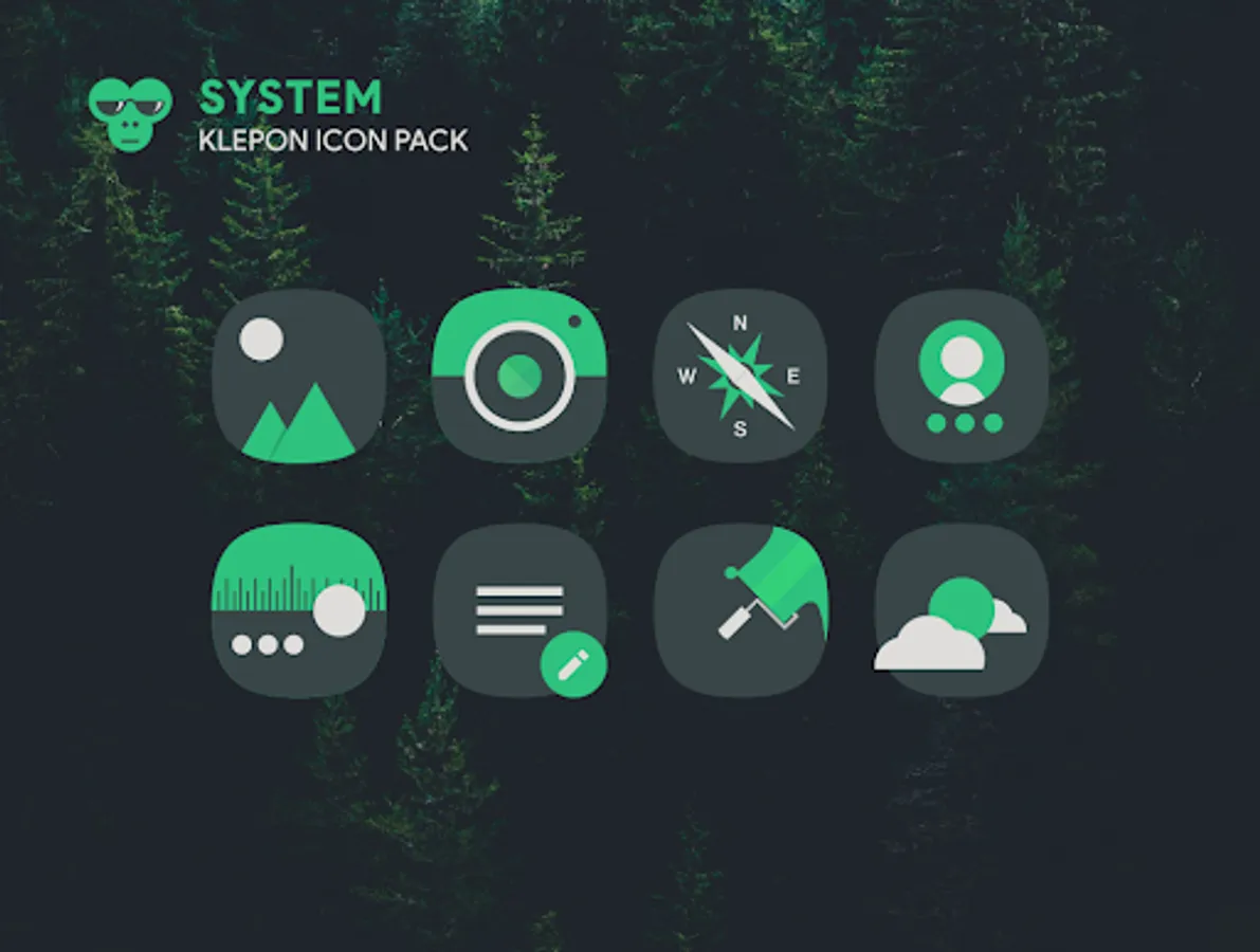 Klepon is a dark, green, and white icon pack that doesn't scream your screen phone. Our icons are crafted manually based on vector graphic processing to give best look and feel.