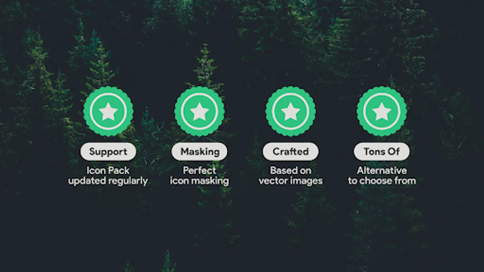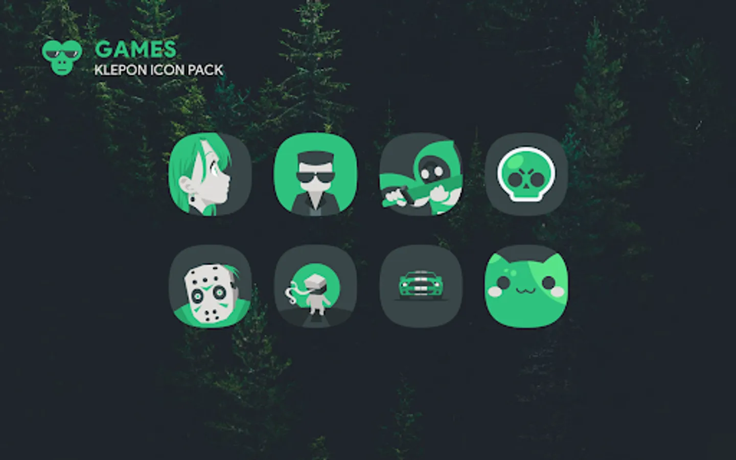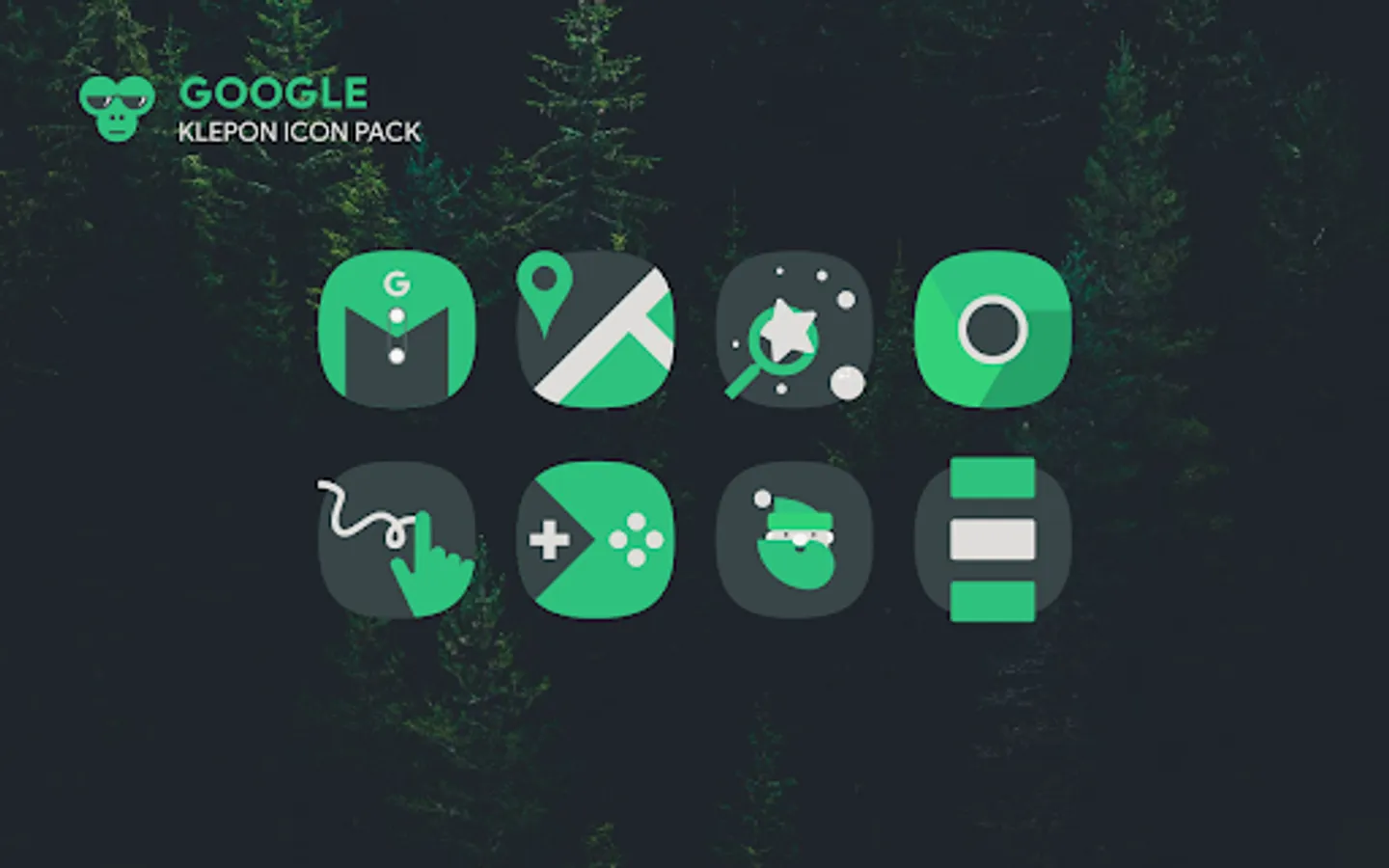 Klepon is a dark, green, and white icon pack that doesn't scream your screen phone. Our icons are crafted manually based on vector graphic processing to give best look and feel.