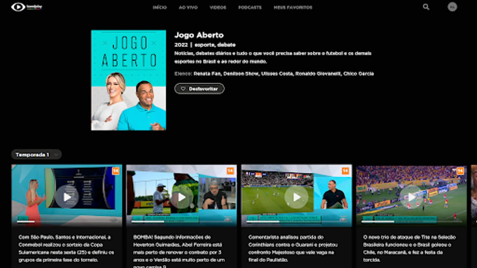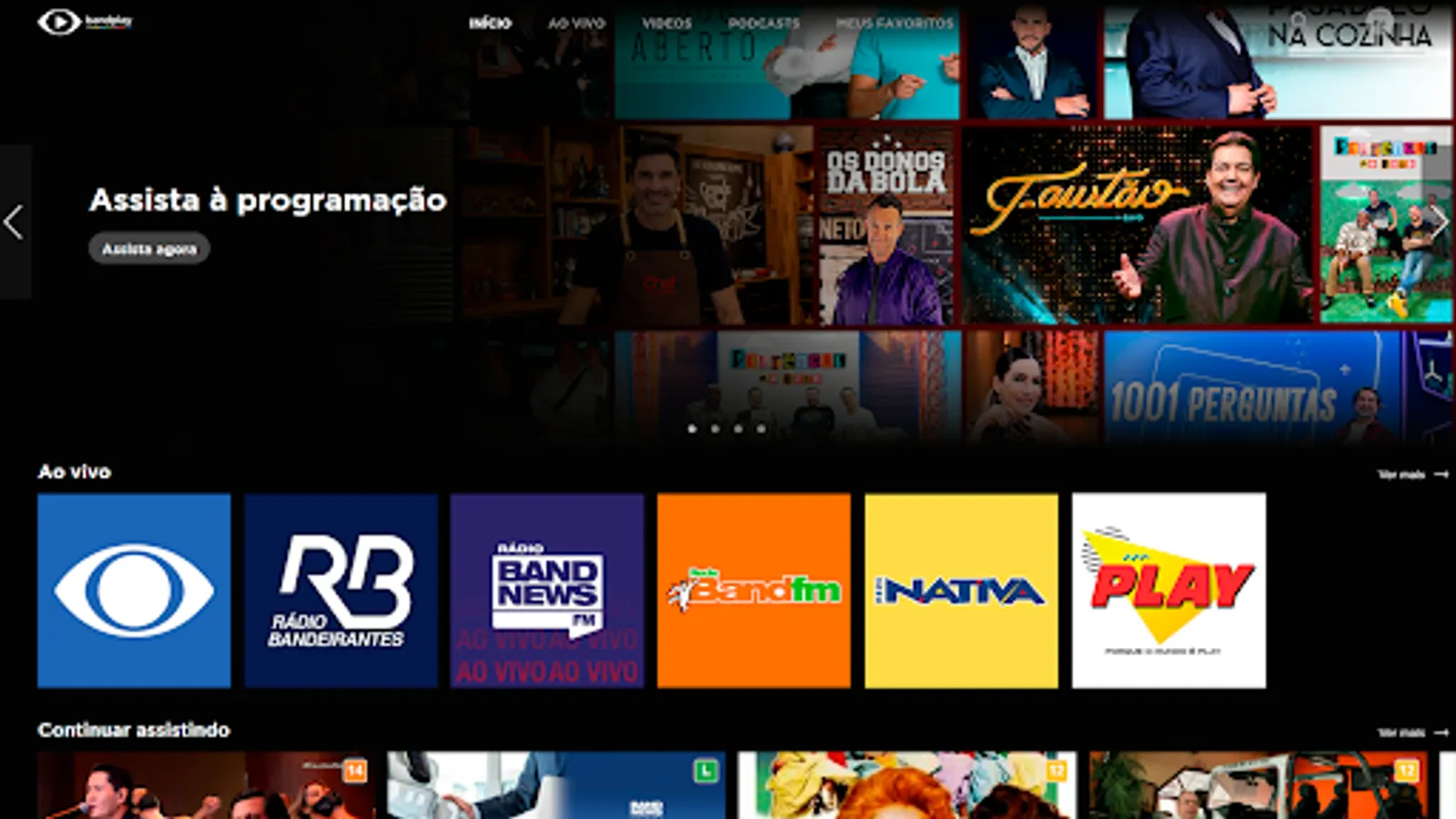 Watch live, or whenever you want, all the TV programming, such as Brasil Urgente, MasterChef, Jogo Aberto, Melhor da Tarde and Faustão na Band. You can also listen to Grupo Bandeirantes radio channels and our podcasts. All this for free for you and your family!