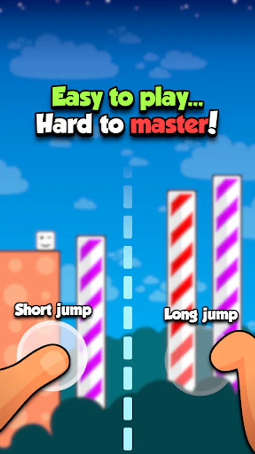 The controls are simple and intuitive. On the left side of the screen, perform short jumps to overcome nearby obstacles, while on the right side, execute long jumps to reach distant platforms. Test yourself and showcase your dexterity as you master these precise controls!