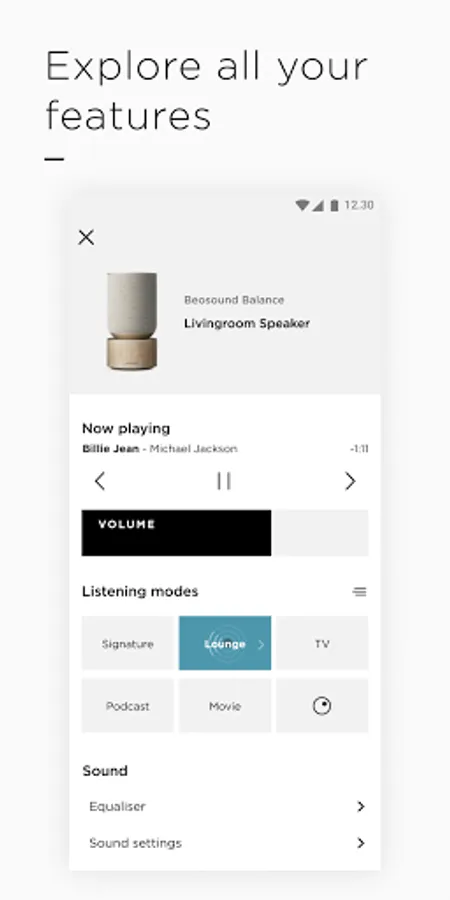 Easy access to product specific sound settings of your Bang & Olufsen product, giving you beautiful sound no matter what you are listing to.