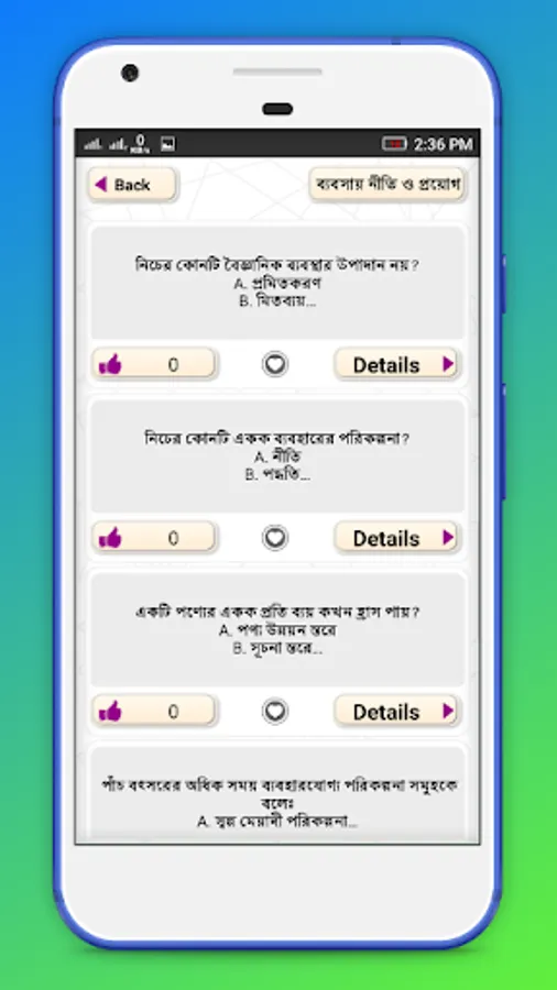 No matter what unit you test, this app has 3 questions answered right now. In addition to the unit you take the exam, the answers to the questions of the rest of the unit will be useful in your exam. Common sense can come in handy or in addition to Bangladesh affairs or international affairs will be useful to you. Besides, Bangla, English, Accounting Science, Marketing, Management, Finance and Banking, Business Policy and Application are all given in this app. So friends, download this app on your mobile today without delay.