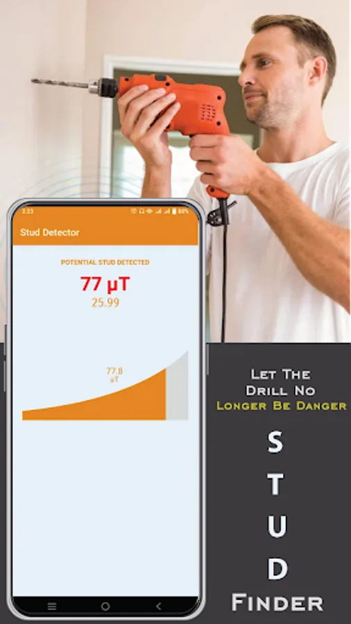Stud Detector Scanner and Wall Stud Detector 2022 works perfectly on all Android smartphones with magnetic sensor and MF detection, open the free Metal Detector app and move it near any place where you have a stud. Looking for metal screw bolts, pipes and wiring. If the input finder and metal detector app finds any metal, it will also start looking at the detection meter to see the values. The Stud Finder and Metal Detector app is a very helpful app and will make your day easier to find by connecting to walls and other places. Metal detection on your phone app works using magnetic sensors