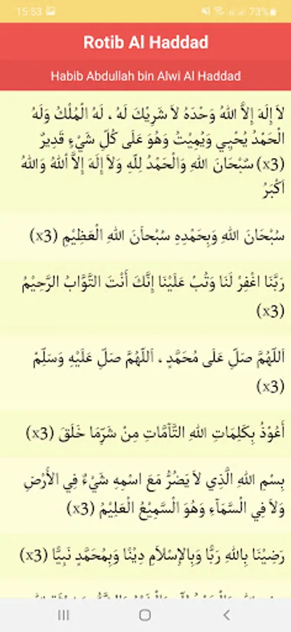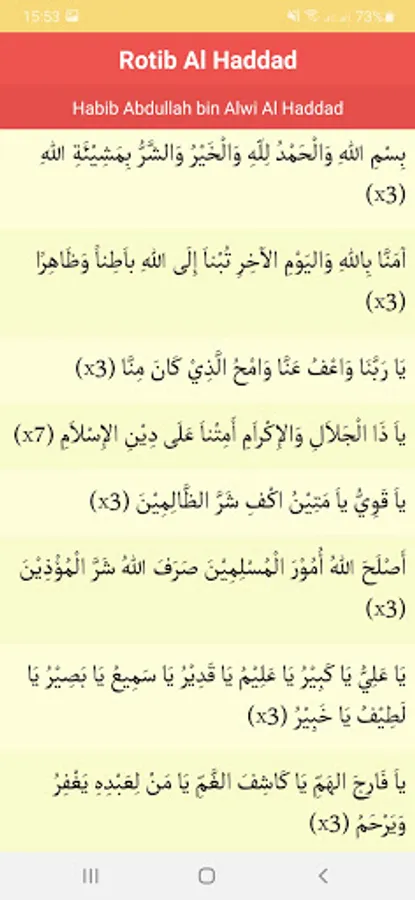 Rotib Al-Haddad is in accordance with the name of its composer, Habib Abdullah bin Alawi Al-Haddad. He was a well-known Islamic reformer (mujaddid).