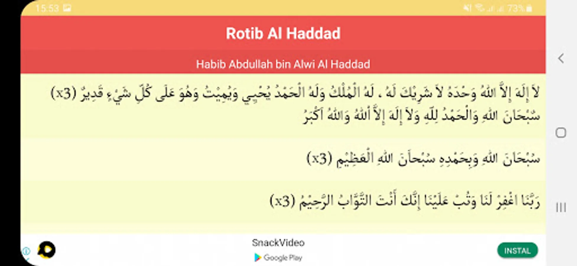 This rotib is generally read in congregation together with the prayer after the Isha prayer '. In the month of Ramadan, it is often read before the Isha prayer 'so that the time for Tarawih prayer is free.