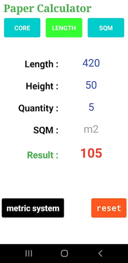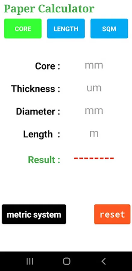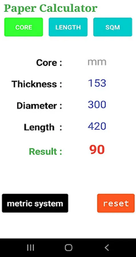 core diameter, thickness, roll diameter, length, height, quantity, sqm, grams and weight.