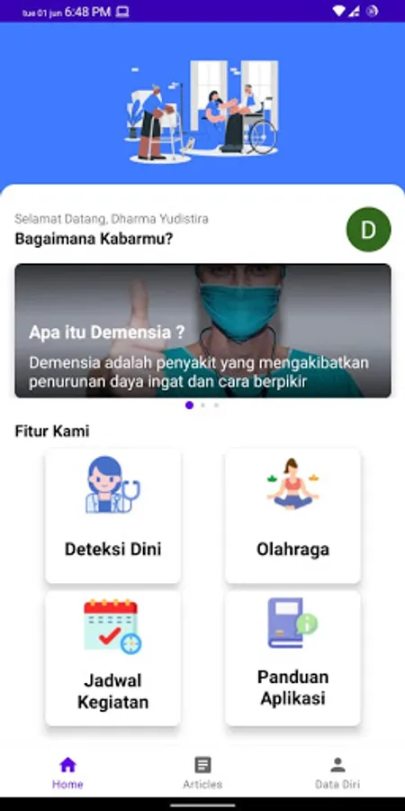 1.2 million cases occurred in Indonesia in 2016 due to a lack of knowledge and awareness to recognize the early symptoms of Dementia. The unavailability of informative and educational media follows as a result of the delay in seeking care from the majority of patients and caregivers until the disease has progressed. Based on this problem, we propose the idea of developing the Dementia Care application to detect early symptoms of Dementia and improve the quality of life for people with Dementia.