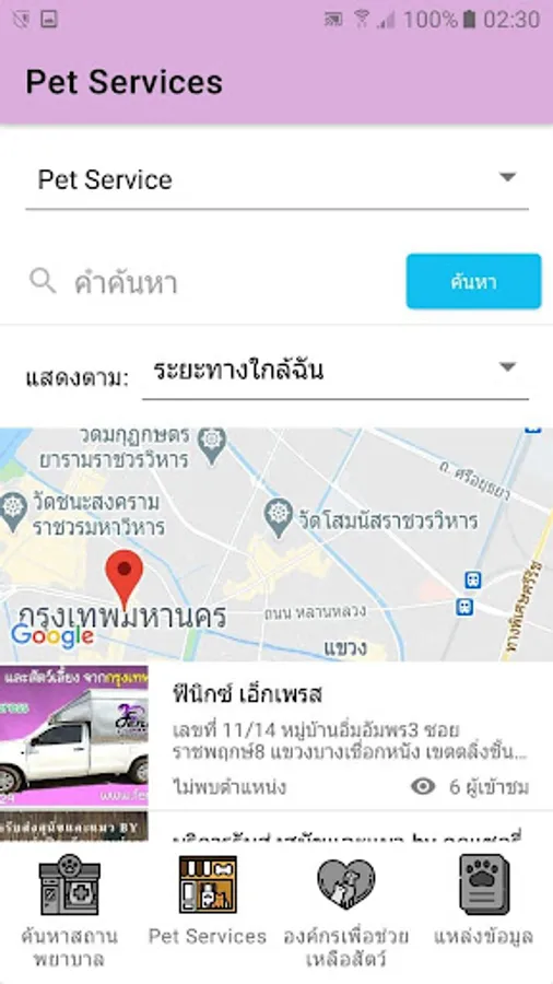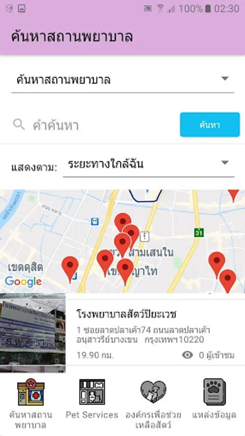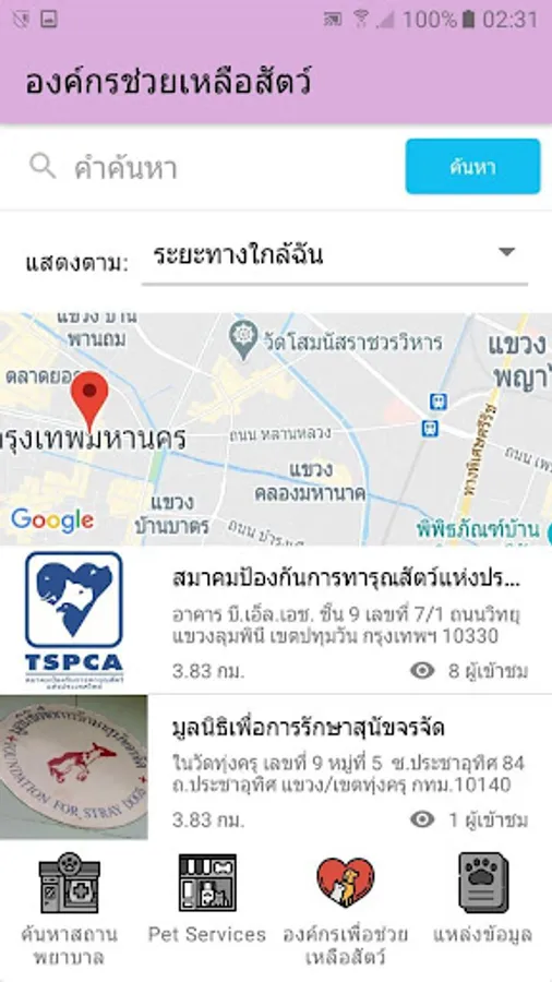 Application to search for veterinary hospitals Animal service facility You can search more than 500 animal hospitals within the app and search for any animal related services such as Pet Shop, Animal Cafe, Pet Shop, Animal Rescue Organization, etc.