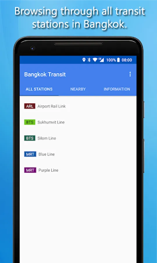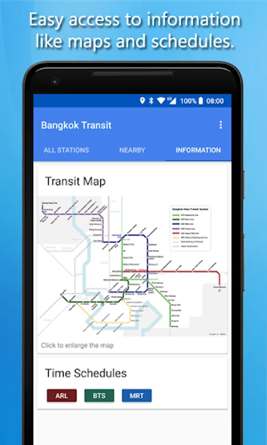 - Bangkok Transit app includes all three main metro transportation systems in Bangkok: Airport Rail Link, BTS Skytrain, and MRT.
