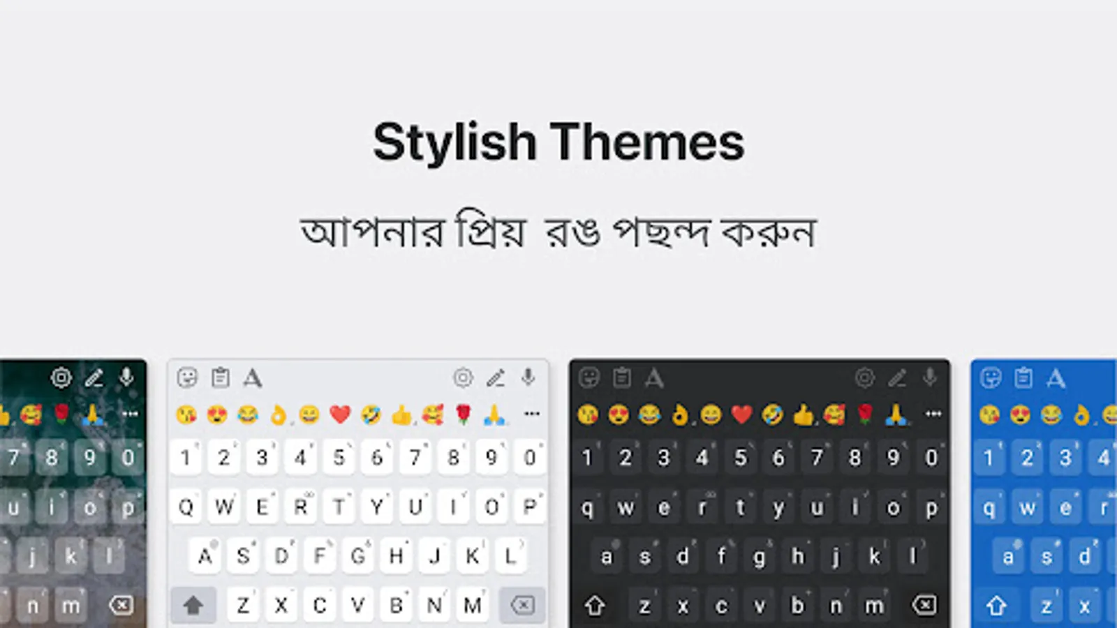 - Change settings and choose from colourful Bangla keyboard themes.