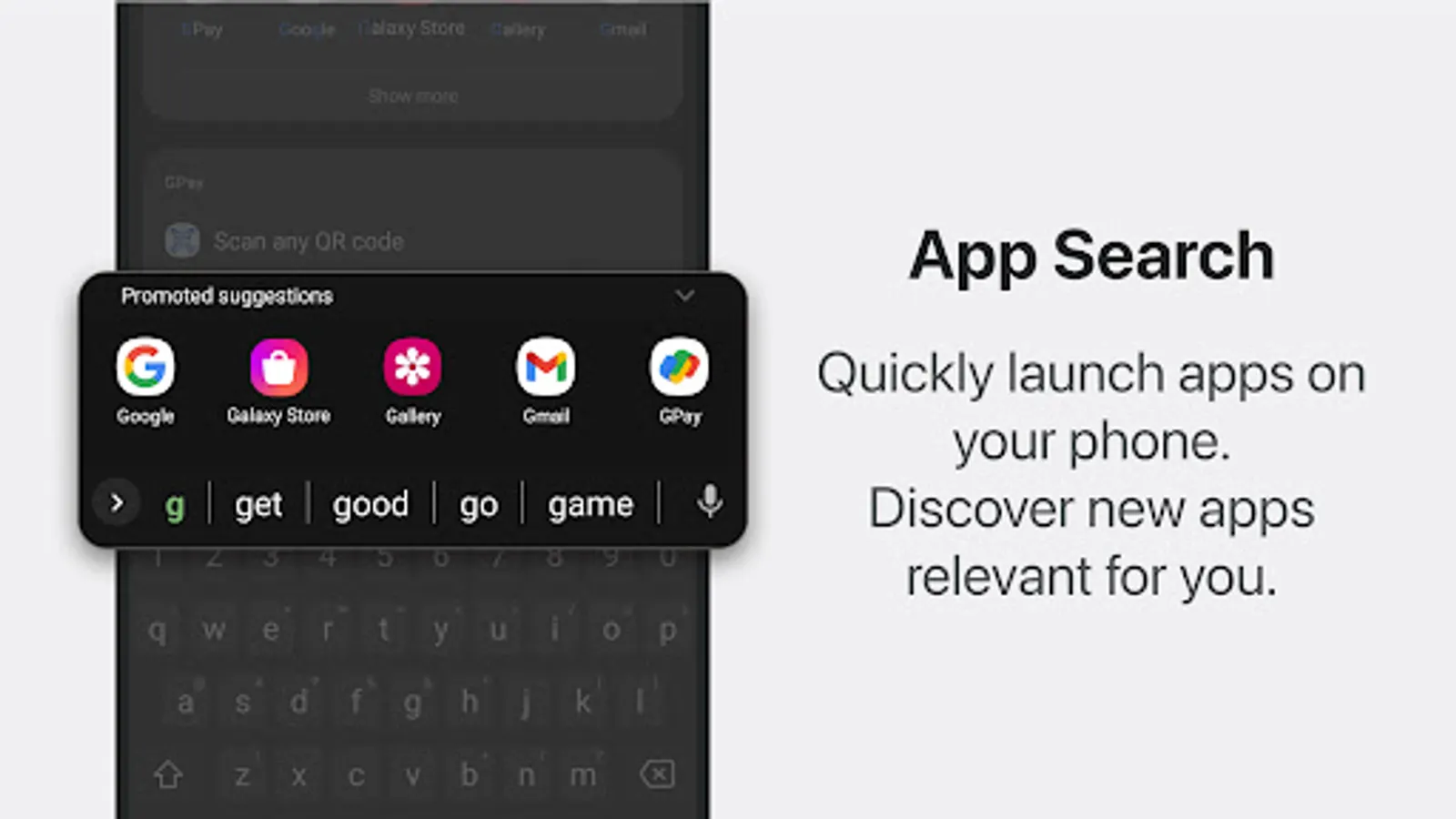 - Easily search and open apps installed on your phone and discover new apps relevant to you with our App Search feature.