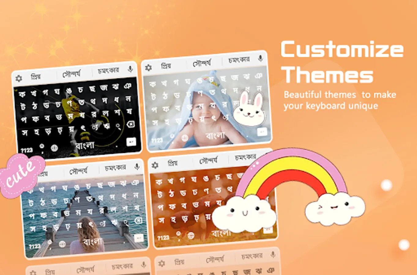 2. The g keyboard has two main features; themes and a Bengali keyboard. In order to apply the bangla keyboard bangla keyboard, the user is required to give necessary permissions to the app. The বাংলা authorizes the user to choose the Bengali keyboard, moreover, the user can also enable it directly from the menu.