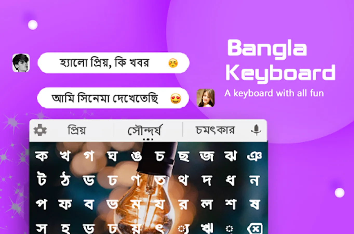 The Bangla keyboard is an incredible app that allows the user to write in Bengali language. The Bangla app / Bangal is quite beneficial for native Bengali speakers who wish to write in their language. The Bangladesh keyboard permits the user to customize their keyboard in order to enrich their writing experience. Banga / bengla app is a free app that is quite easy to use. It is user-friendly and requires little to no professional guidance. In addition, the user can also get the premium version of Bengali keybaord so they can enjoy an ad-free facility.