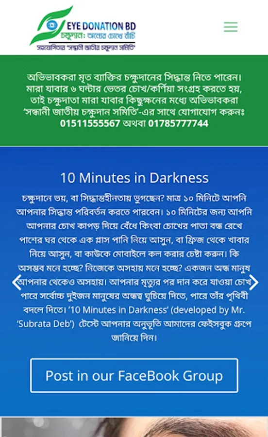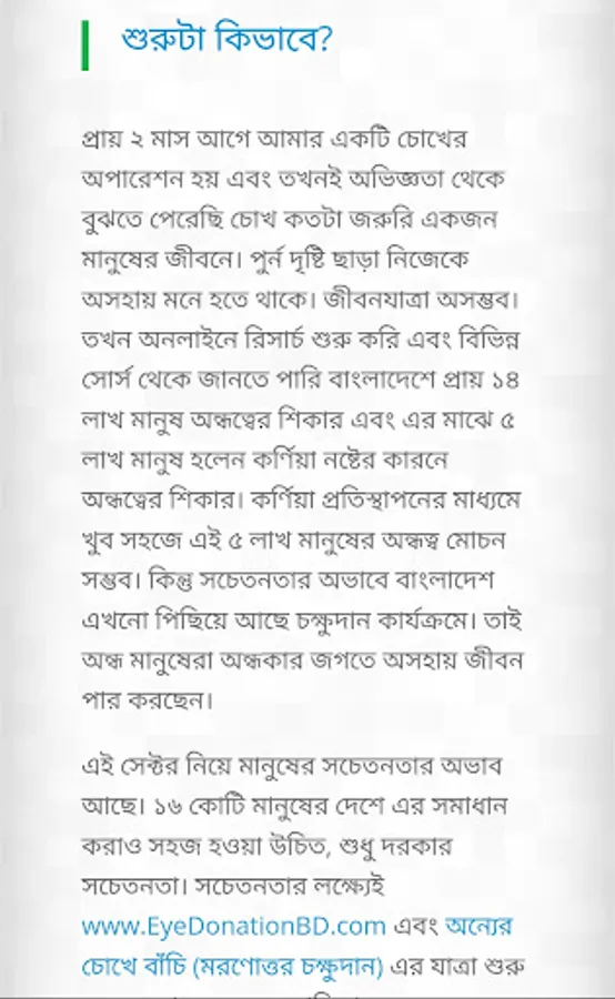 Eye Donation BD is an online platform to spread awareness about eye donation in Bangladesh. People can registar as an eye donor from home by using this platform.