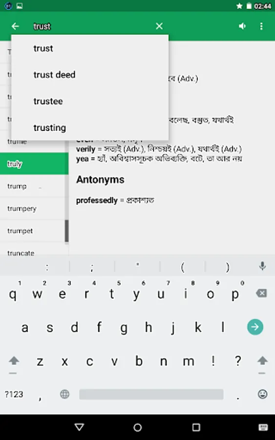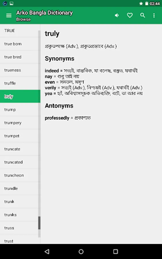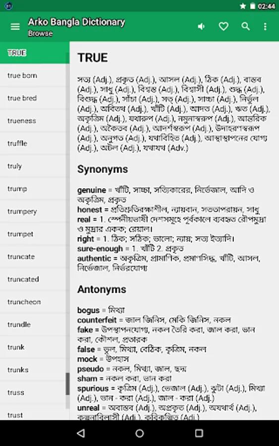 This English to Bengali dictionary is absolutely freeware and contains similar words, synonyms and antonyms. It will be our pleasure to have feedback and suggestion from your side.