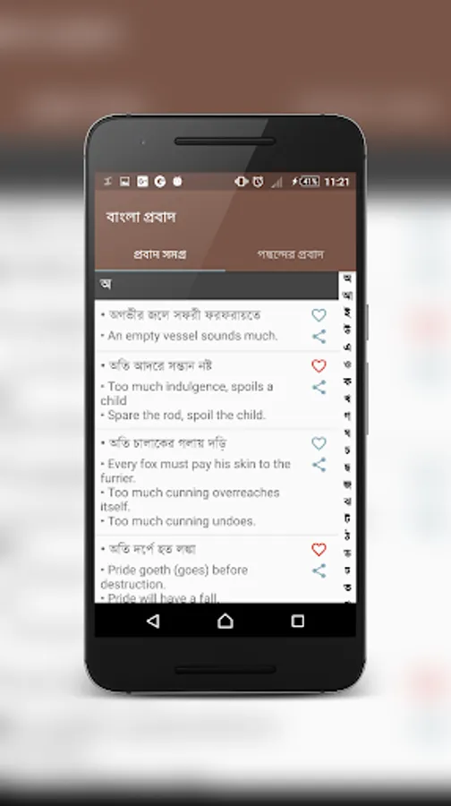 This app contains the list of all Bangla probad (proverb) with its English translation. It will be very handy for the students as well as for all who are interested in this stuff. The job seeker can also have this to read frequently.
