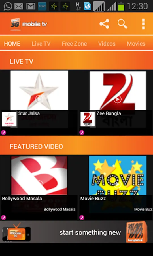 Banglalink Mobile TV is a mobile streaming application with premium Live TV, Loop and Video content. Through this application you can enjoy leading Bangladeshi, Indian and other International TV channels spanning across all genres. Besides viewing the TV channels, you can also enjoy popular videos and movies.