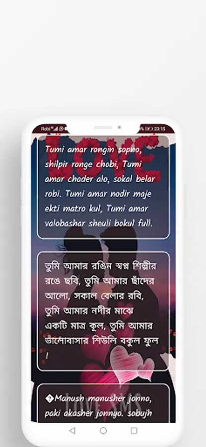 তো চলুন দেখে নেওয়া যাক প্রেমের এসএমএসের এই অসাধারণ কালেকশন। এছাড়াও আপনি অন্যান্য এই অ্যাপে বিশাল ভালোবাসার এসএমএস পাবেন।