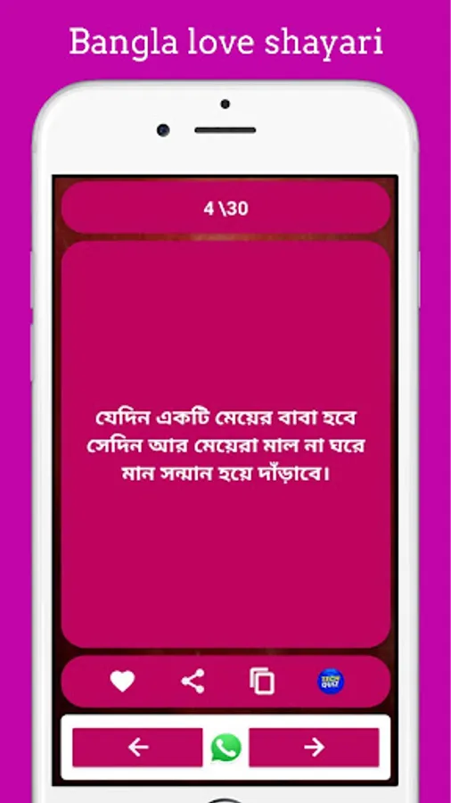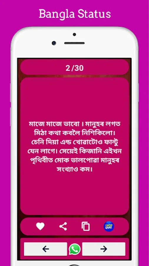 Very easy to use interface just next and right to read the beautiful Bangali attitude status in Hindi and easy share to your friends.