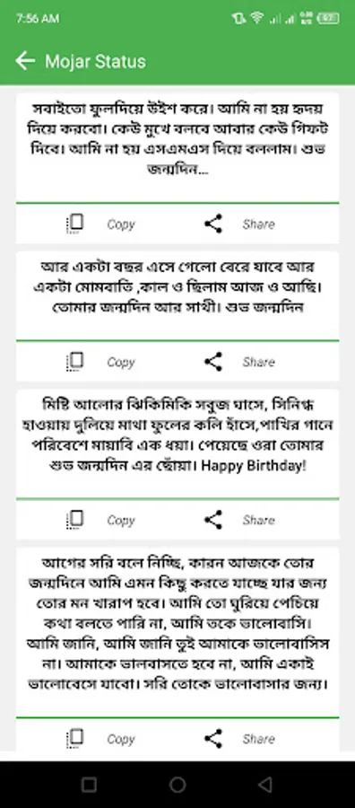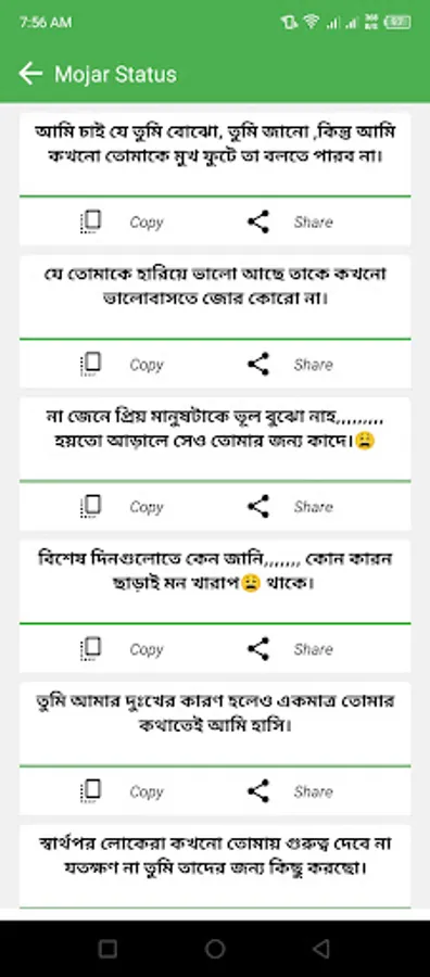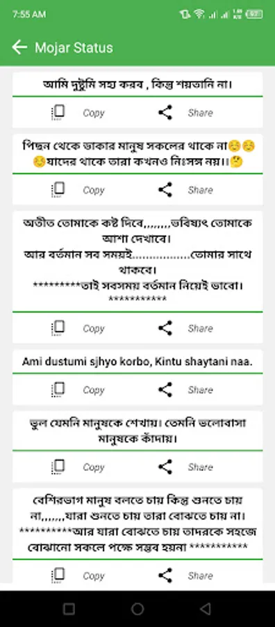 আমাদের অ্যাপ টিতে যে স্ট্যাটাস গুলো পাবেন সেগুলো হলোঃ