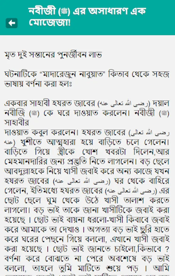 ইসলামিক ঘটনা অ্যাপটি কয়েকজন নবী ও তাদের মুযেযা নিয়ে করা হয়েছে।
