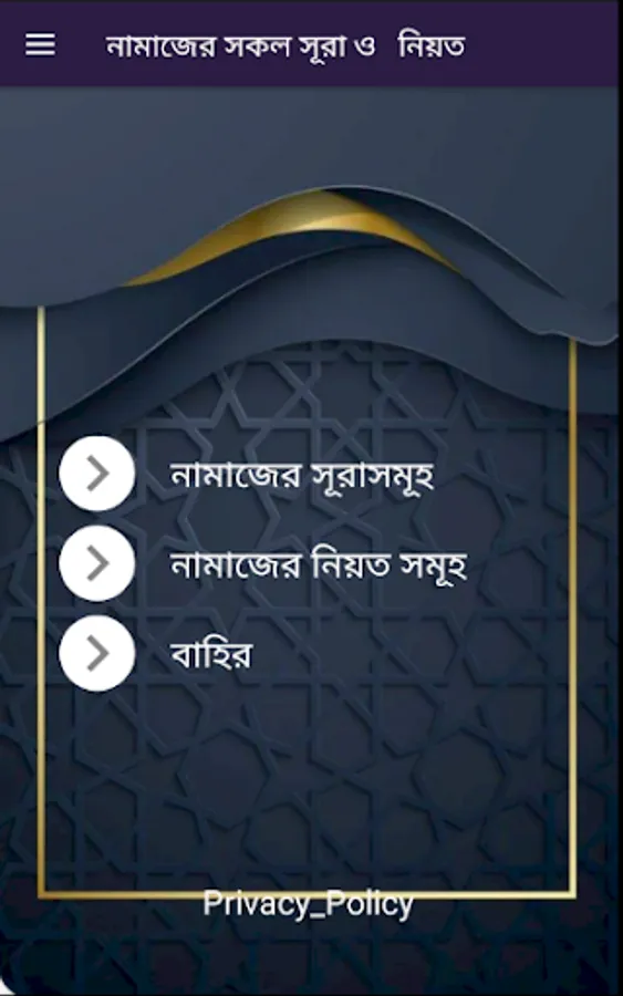 এই অ্যাপ্সটির মধ্যে নামাজের অতি প্রয়োজনীয় সূরা ও নিয়ত গুলো সুন্দর ভাবে আরবি উচ্চারণের সাথে বাংলা অর্থসহ সাজানো হয়েছে।